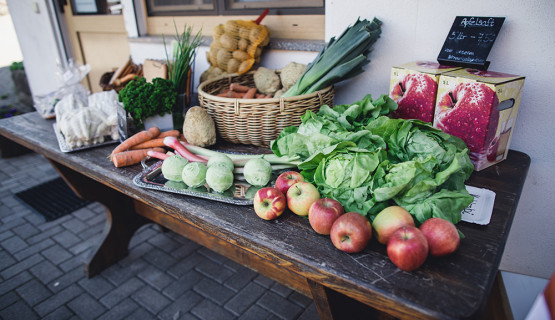 Im Hofladen bekommen Sie Rind- und Schweinefleisch, Eier, Brot, Obst und weitere Erzeugnisse aus eigener Landwirtschaft.