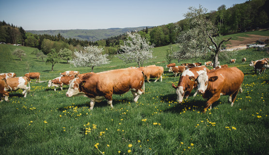 Der Schmiederhof liegt am Rand des Langenhard und wenige Minuten von Lahr entfernt. Seit 1997 führen Bernd und Sabine Schmieder gemeinsam mit ihren Kindern Jonas und Helena den Familienbetrieb. Die Rinder stehen in Mutterkuhhaltung auf weiten Wiesen. So wächst das Fleisch langsam heran und Sie erhalten Produkte mit nachvollziehbarer Herkunft.
